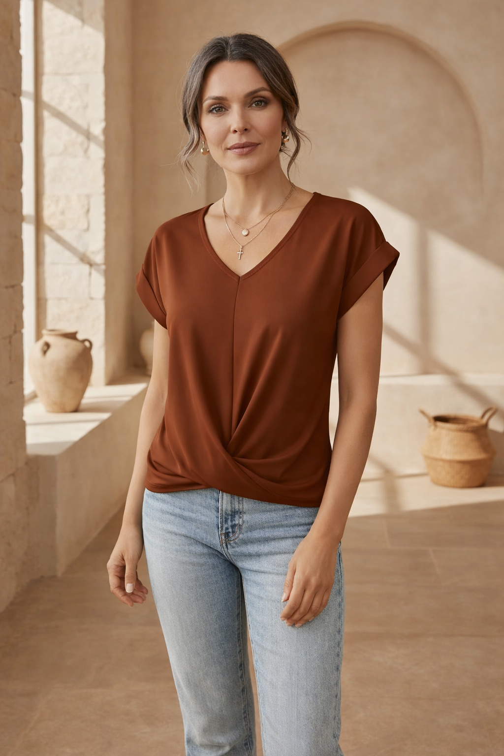 • Flattering Twist Detail: Features a soft V-neckline and a graceful front twist that adds visual interest while creating a naturally slimming effect.