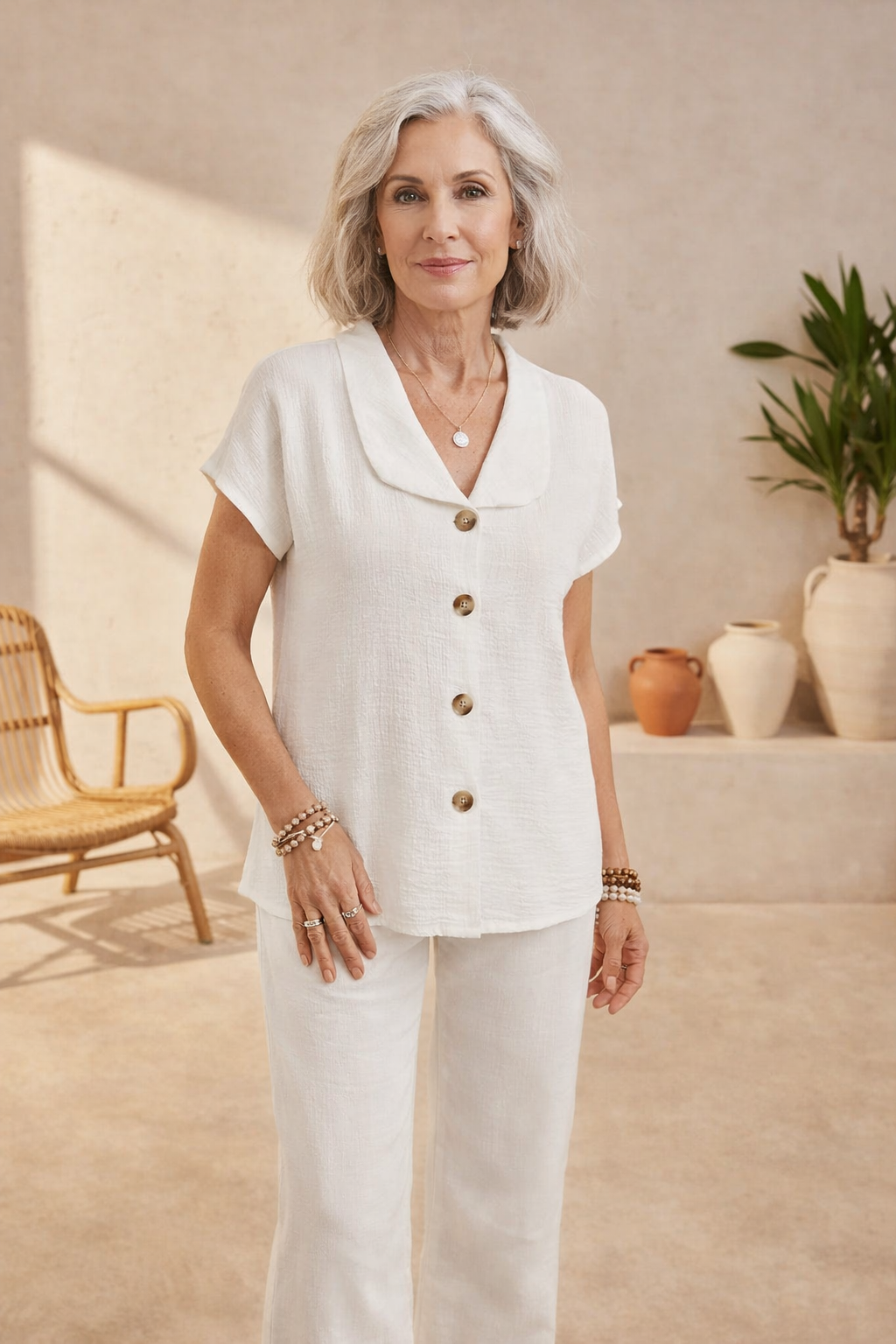 *Runs small; we recommend going up a size. Effortlessly Chic in Every Season. Elevate your everyday look with the Nala Chic Summer Blouse. Crafted for both comfort and style, this blouse features a relaxed fit and button-down design, perfect for casual outings or dressier occasions. Its light fabric ensures breathability and an effortless chic vibe, making it a wardrobe essential for warm weather.